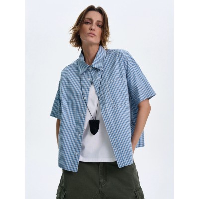 男性と女性のためのテクスチャチェック柄半袖シャツ、ゆったりとしたカジュアルなヴィンテージカップルトップジャケットイン